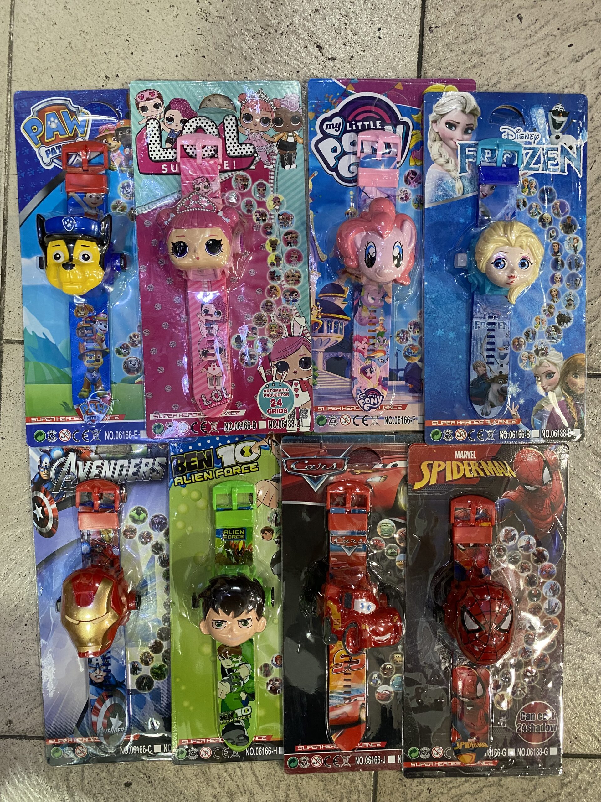 Reloj digital personaje con accesorios y piezas intercambiables x1 unidad elegí Spiderman paw Patrol patrulla canina Frozen little pony muñeca lol cenicienta Spiderman hulk capitán América ironman$5.748,85Añadir al carrito