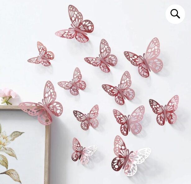 Pack x6 mariposas caladas metalizadas con puntos adhesivos para aplicarlas dónde quieras.